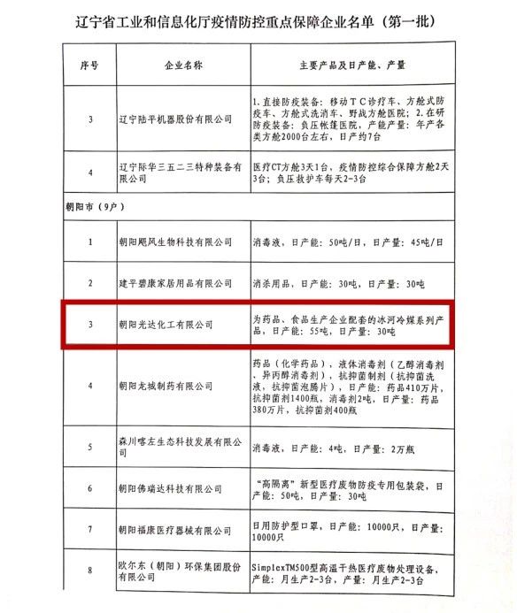 冰河冷媒被列入“遼寧省疫情防控重點(diǎn)保障企業(yè)”名單